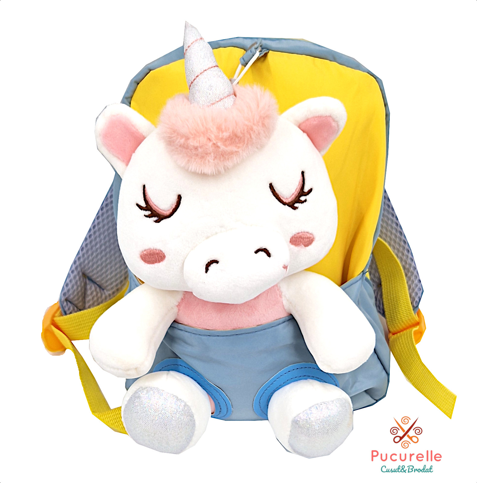 - Design Unic și Atractiv: Cu jucărie atașată unicornț, rucsacul aduce un plus de gingășie pe lângă utilitate. Unicornul este moale, pufos, bun de strâns in brațe, este detașabil și suntem singurul loc unde găsești ghiozdane personalizate cu broderie.